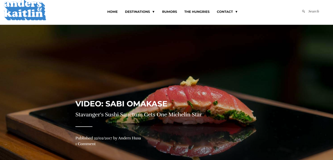 Anders & Kaitlin sin Food & Travel Blog er mektig imponerende, og er en restaurantguide jeg kommer til å ha stor nytte av fremover. Her vil du garantert finne restauranter du kommer til å like, og som kommer til å gi deg matopplevelser du aldri før har opplevd, uansett hvor du er på reise i verden.