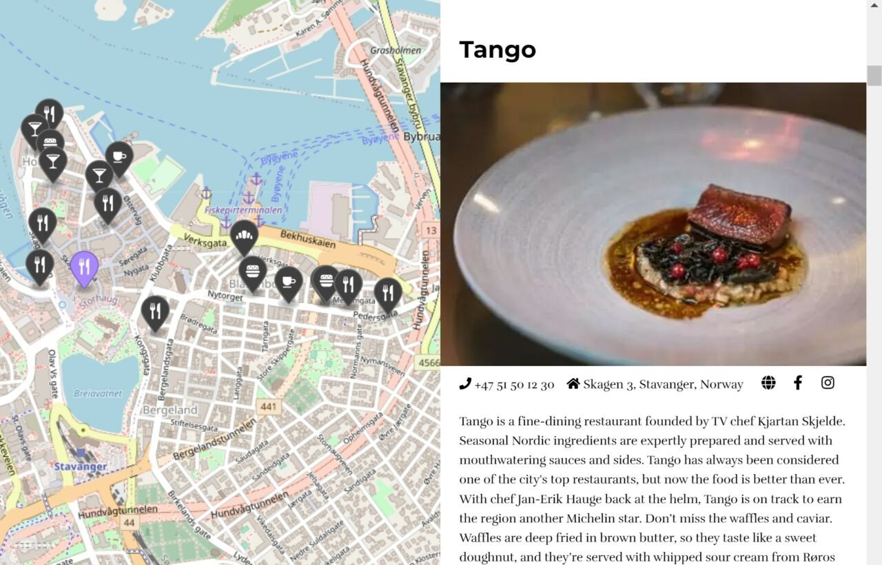 Bloggsiden er strukturert på en ryddig og oversiktlig måte! Det som virkelig skiller seg ut med denne bloggen, er den smarte organiseringen av restauranter etter land og by, i tillegg til at de er plottet på kartet. Dette gjør det raskt og enkelt å finne frem! Selvfølgelig får du også all nødvendig informasjon, som adresse og telefonnummer, slik at du kan ringe for å reservere bord. Hvis restauranten har en nettside, er den også tilgjengelig, slik at du kan utforske mer, sjekke den nyeste menyen og bestille bord online. Det er virkelig en brukervennlig opplevelse for alle matentusiaster!