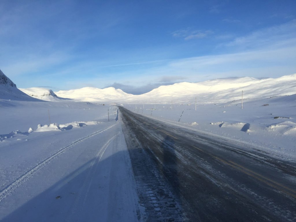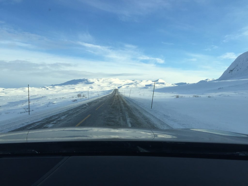 Biltur over Hemsedal. Her kjører vi i retning Oslo, med nydelig sol og snødekte fjell. Bilde: tormodgundersen.com.