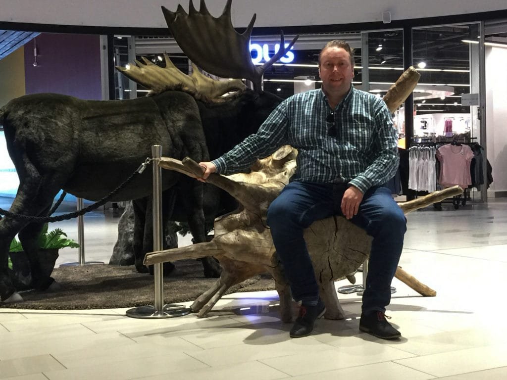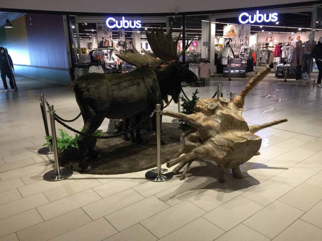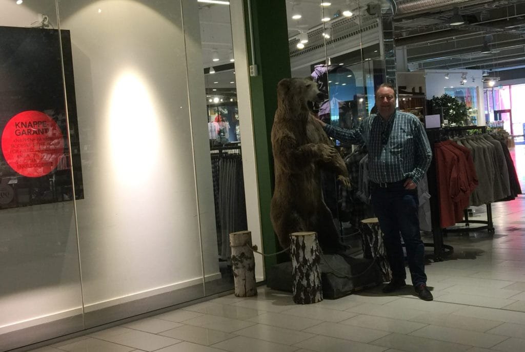 I kjøpesenteret er det selvsagt også utstilt en bjørn som man kan klappe. Foto: Tormod Gundersen.