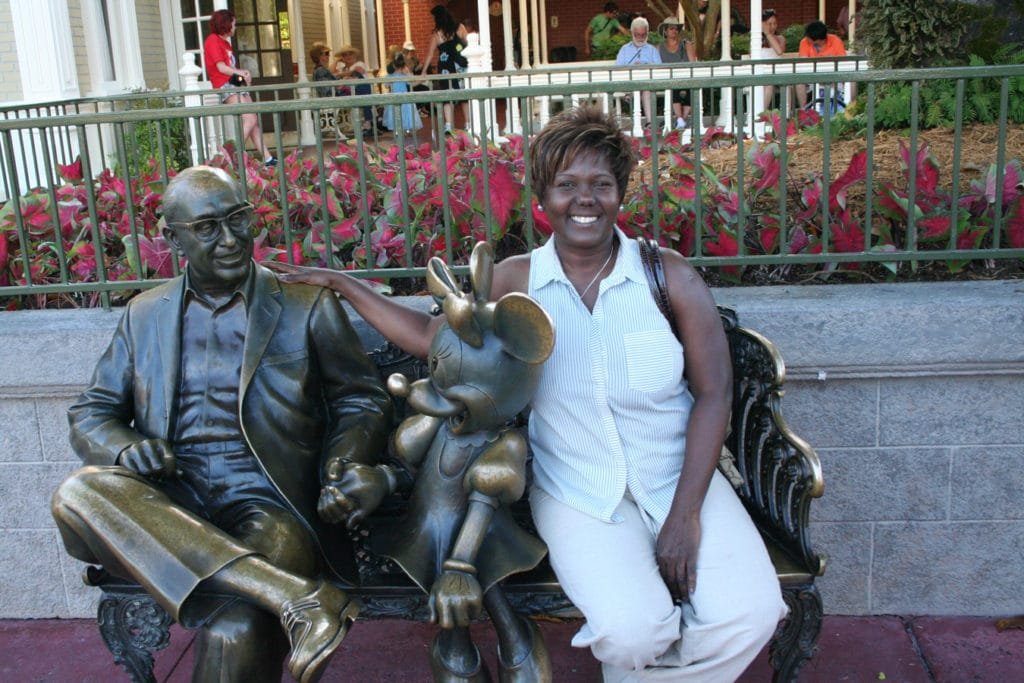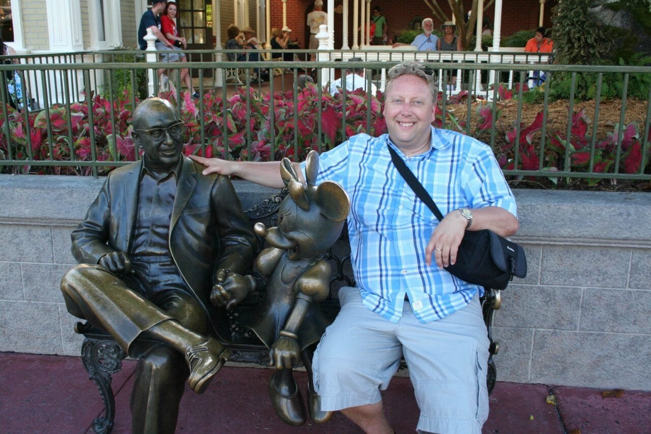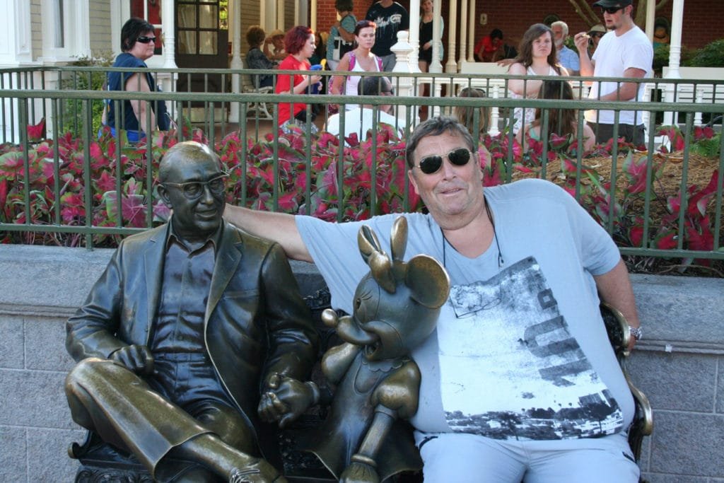 Det første vi naturligvis måtte gjøre, var å hilse på selveste Walt Disney før vi gikk videre. Statuen satt på en benk, så vi slo oss like godt ned ved siden av ham. En fantastisk morsom opplevelse!