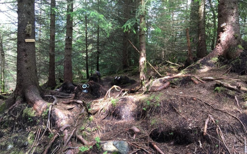 Legg merke til øynene som er laget, til og med på trærne. Foto: 22.07.2015 av Tormod Gundersen.