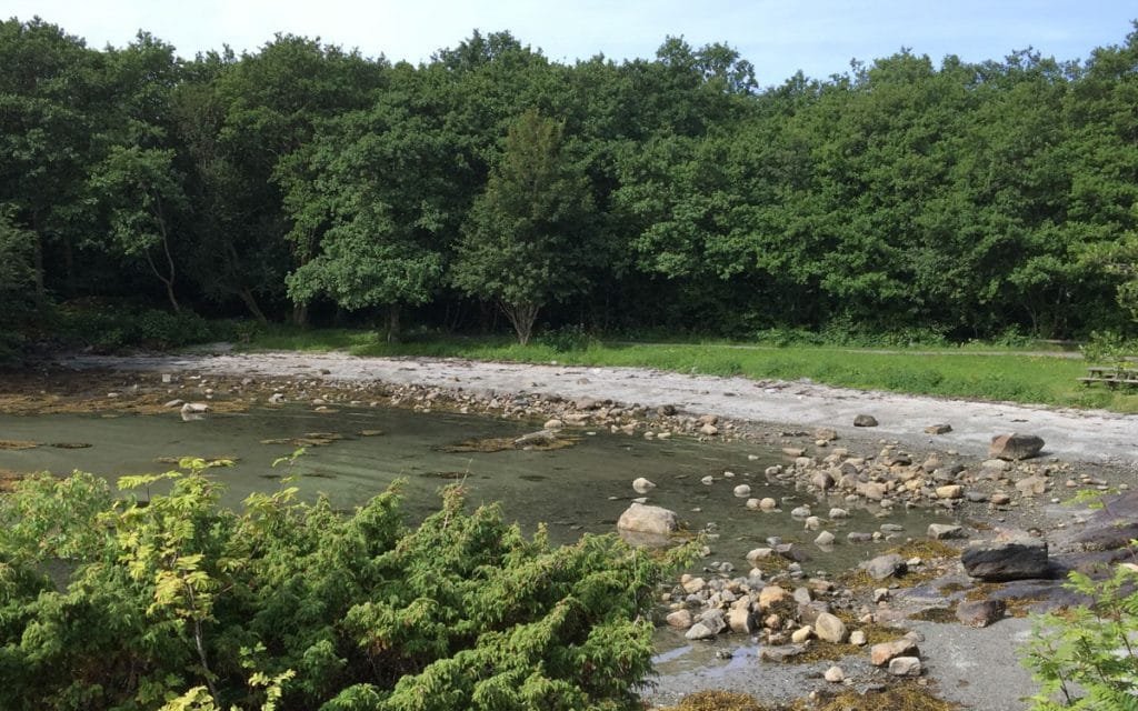 Hystadmarkjo har vernet svartorskog og vakre badestrender