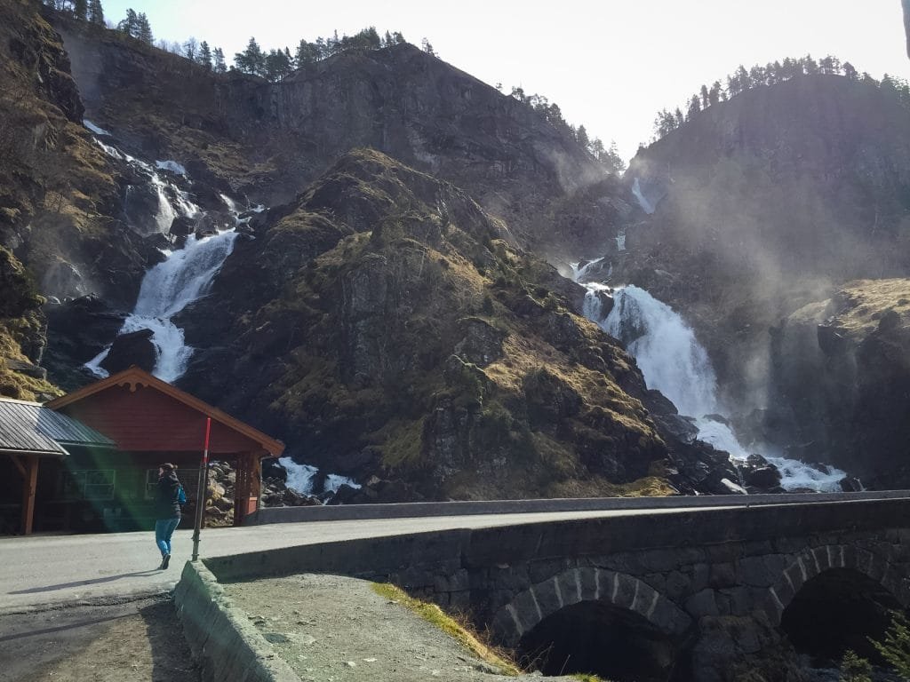 Låtefossen er en imponerende foss med to overløp fra Låtevatnet som møtes midt i fossen, og den har en jevn vannføring året rundt. På 1800-tallet var Låtefossen et populært reisemål for engelske og tyske turister som besøkte Odda. De ble fraktet med hest og kjerre fra fjorden, langs Sandvinvatnet og opp Oddadalen til fossen.