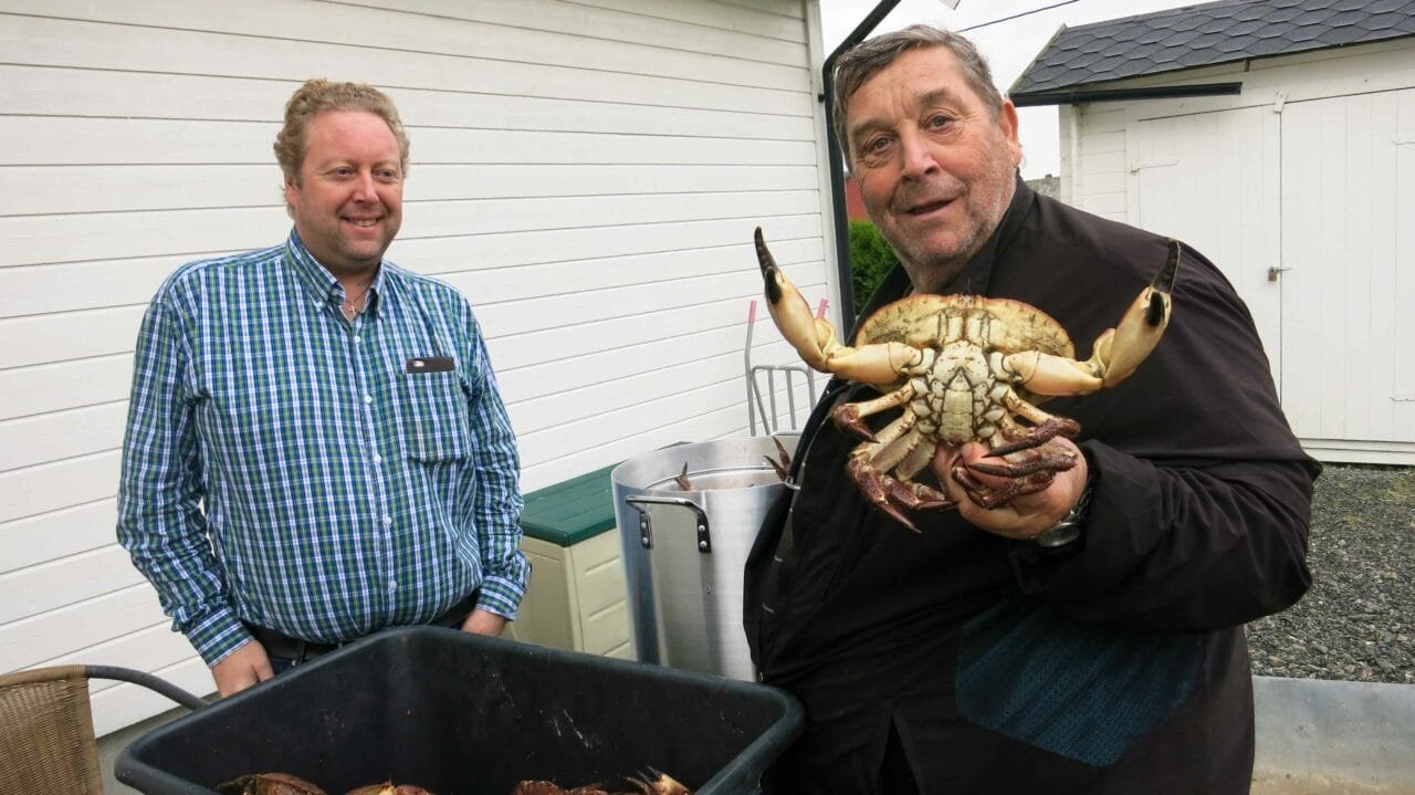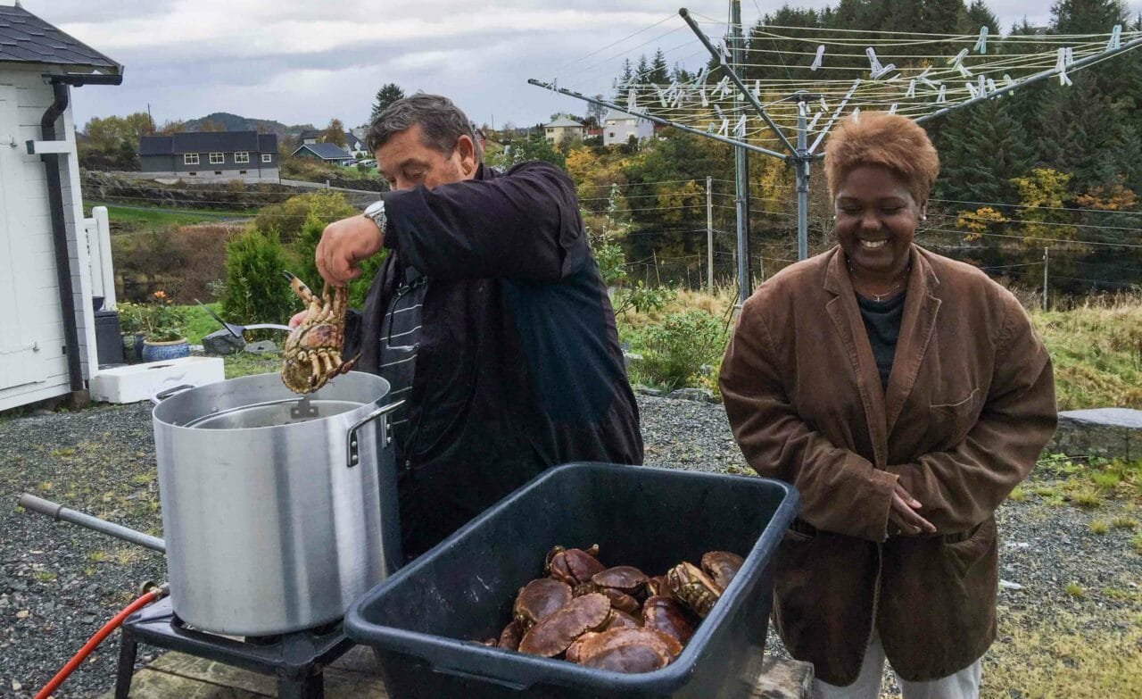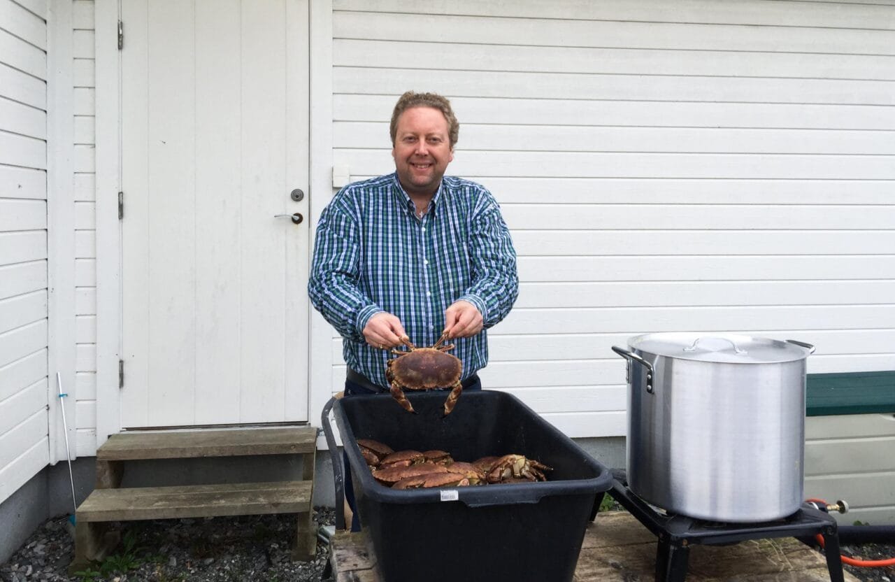 Oktober har kommet og det er tid for krabbefiske. Jeg og min kone har vokst opp på krabbe, og på senhøst er det skikkelig med mat i krabben. Vi var derfor veldig spent på årets fangst. Min far satte ut seks teiner, og vi fikk to store baljer med krabbe.