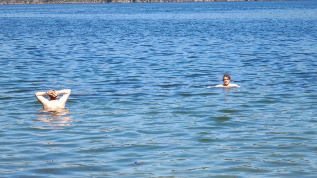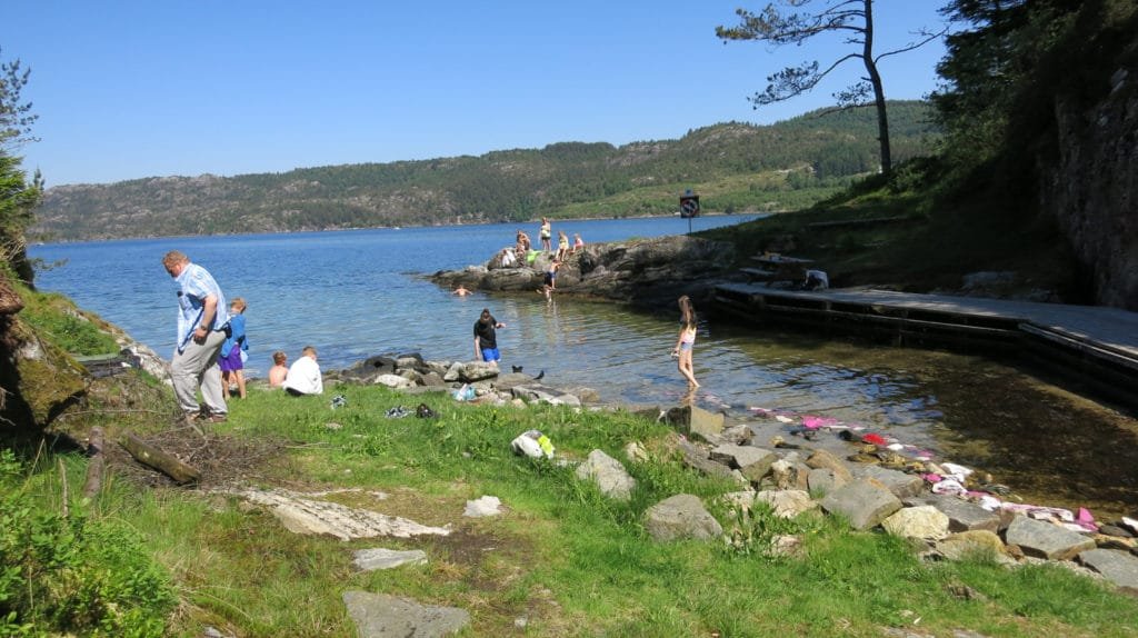 Her er det bare å gjøre seg klar til å bade, og allerede var det mange mennesker som badet denne sommerdagen.