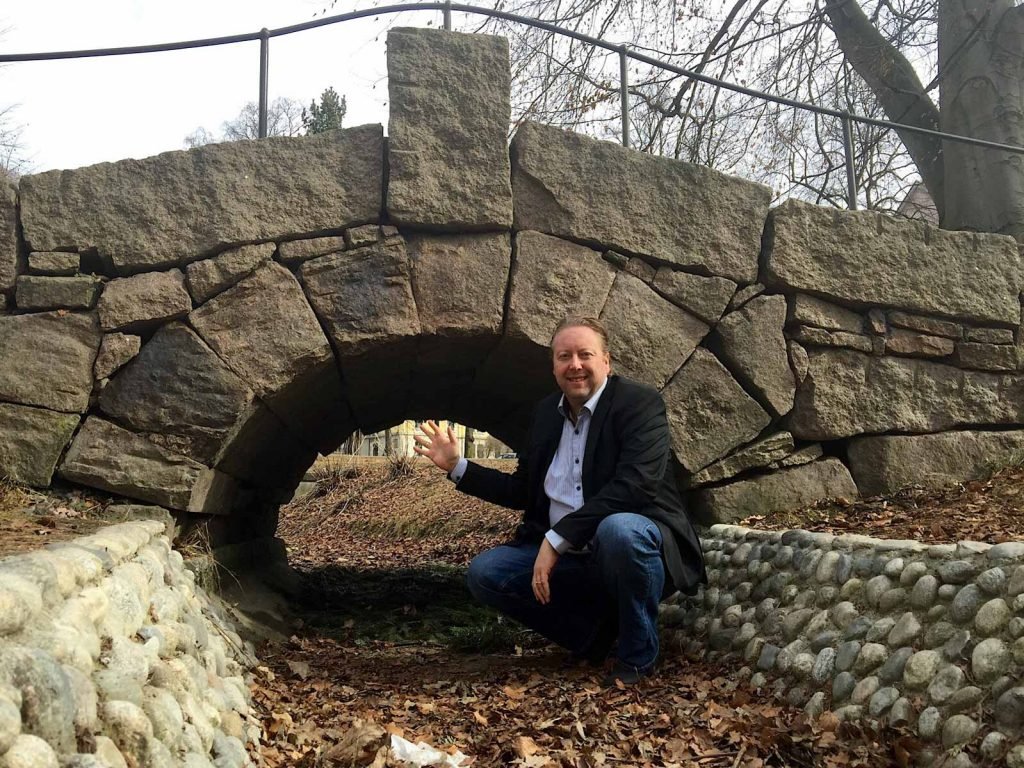Her er jeg ved Steinhvelvbrua som ble anlagt i 2001. Foto 14. april 2017.