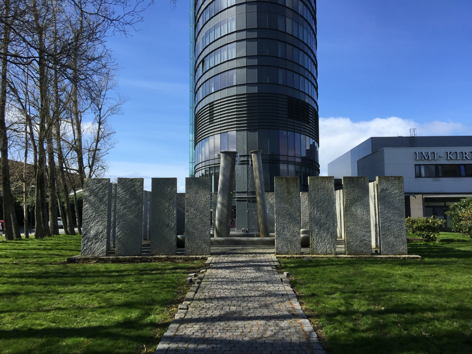 Like ved Scandic Forum Hotel og IMI-kirken i Stavanger er det reist et monument som  er en firkant med granittsøyler rundt et vannbad. Vannet renner fra to skråstilte pilarsøyler, og det hele gir et vakker kunstnerisk inntrykk. Monumentet er utført av billedhuggeren Bård Breivik og ble avduket 16.juni 2003.