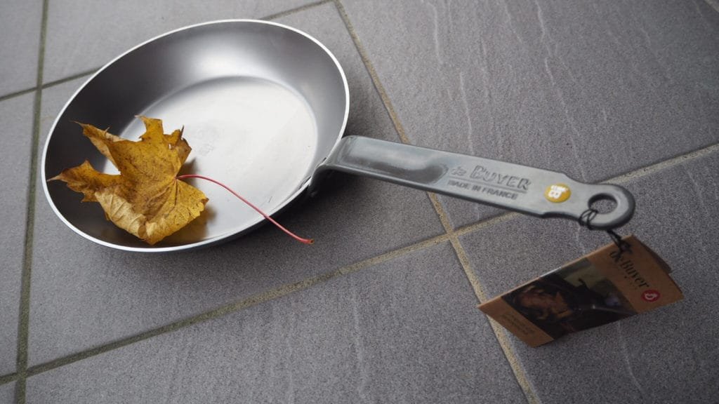 På rustfritt stål vil ikke det brente oljelaget være synlig, og stekepannen vil fortsatt se blank og fin ut. Karbonstål, derimot, vil etter hvert bli helt svartbrent – noe som faktisk er et godt tegn! Hvis du vasker pannen med såpe og skrubb, forsvinner dette viktige oljelaget, og maten vil lett brenne seg fast. Tro meg, jeg har prøvd! Med riktig vedlikehold er disse pannene perfekte til steking på alle temperaturer, og kan vare livet ut.
