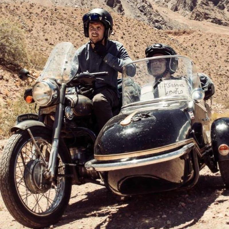 I første episode skal Samuel og bestefaren krysse Andesfjellene på en gammel motorsykkel med sidevogn. Bilde hentet fra Facebook siden.