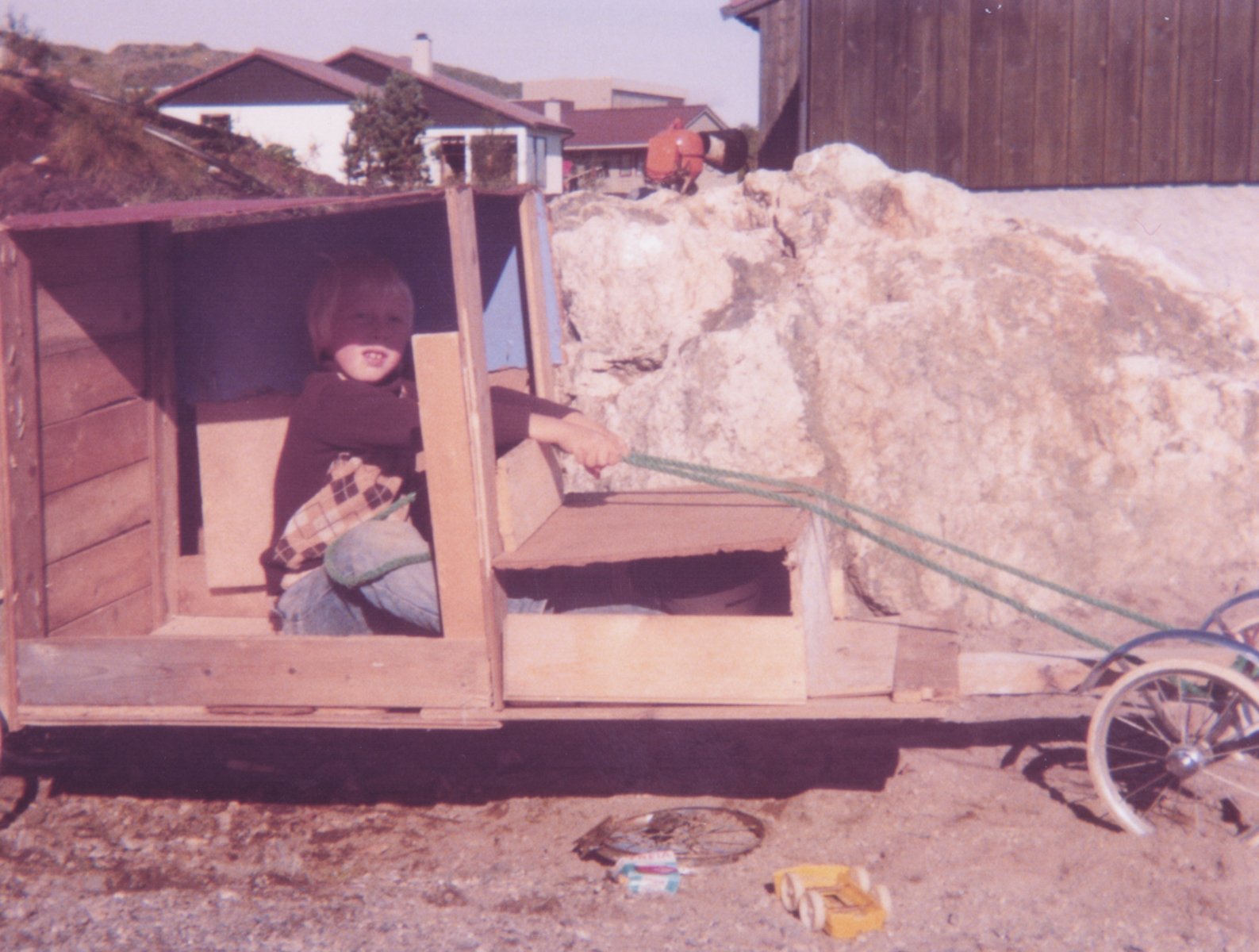 Nylig bladde jeg i bildealbumet fra barndomen, og kom over min første kassebil. Jeg husker det god selv om det er 36 år siden og jeg var 8 år. Tror det var i 1981. Det var jeg og min barndomsvenn Frode som bygde bilen. Han var to år eldre enn meg og var hjernen bak prosjektet. Jeg fungerte nok mer som en medhjelper og håndlanger.