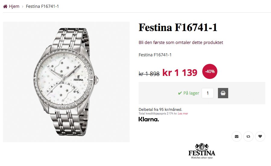 - Festina klokke Dame 40%, Vakker.no, her.