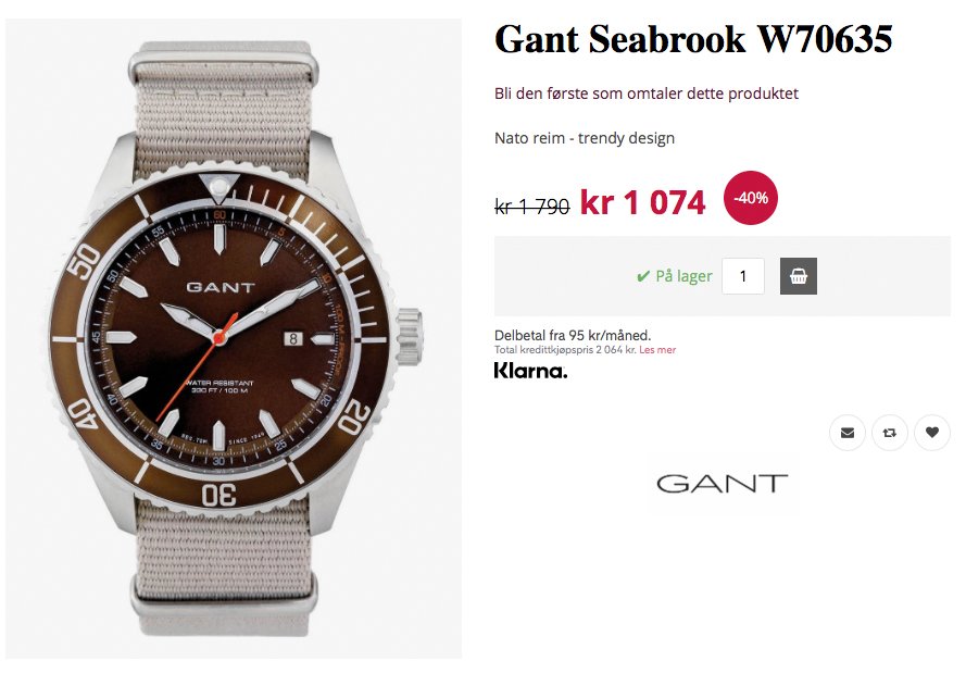 Gant Seabrook herre til 40% rabatt. Foto: Skjermdump Vakker.no.