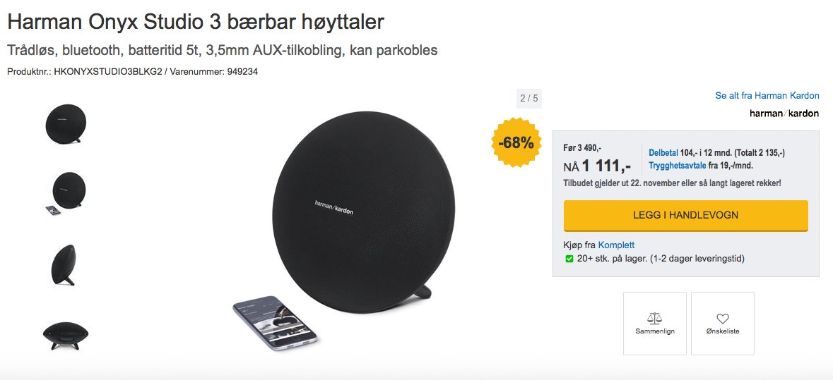 - Harman Onyx Studio 3, 68%, Komplett.no, her.