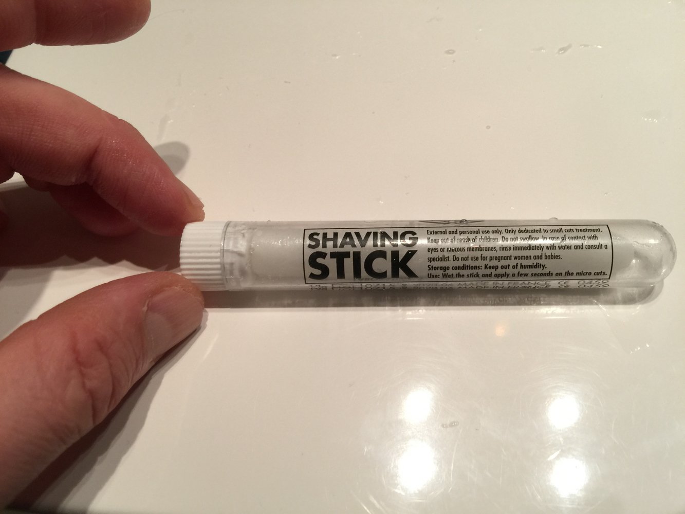 En blodstillerstift er en effektiv måte å stoppe blødning fra kutt og sår etter barbering. Foto: Tormod Gundersen.