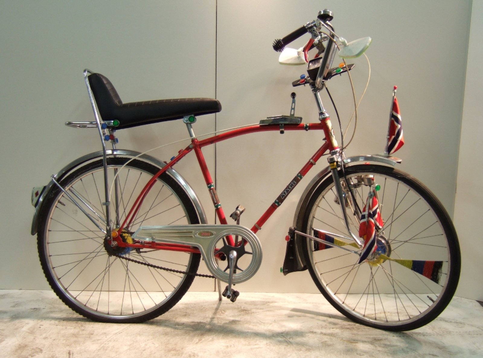Apachesyklene hadde tre-trinns navgir, med en gedigen girvelger med T-håndtak plassert på rammen. Som ekstrautstyr kunne man få speedometer, vimpel, skvettlapp, speil og horn. Sykkelen har i ettertid vært ettertraktet av samlere.