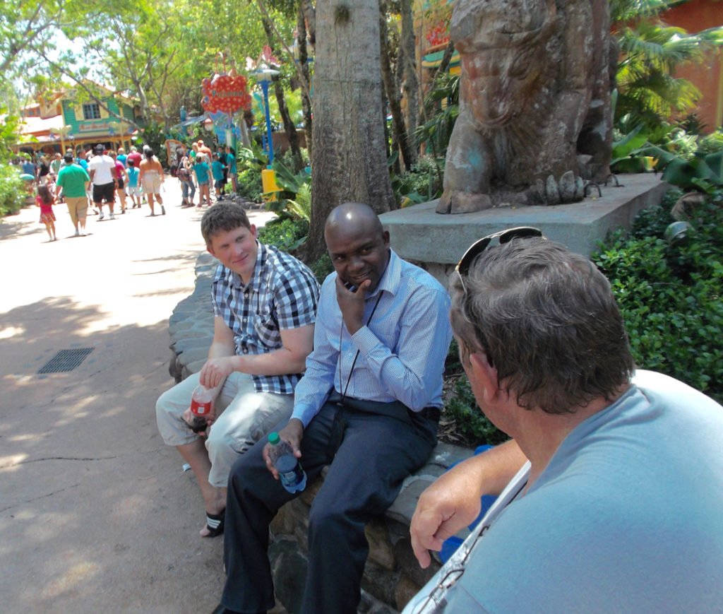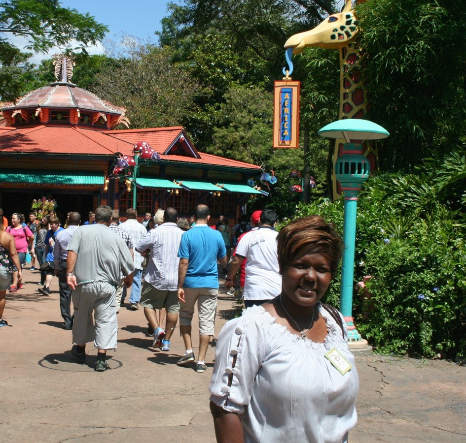 Inngangspartiet til Animal Kingdom i Disneyworld, her med Paul som står til høyre og som er vår lokale guide.