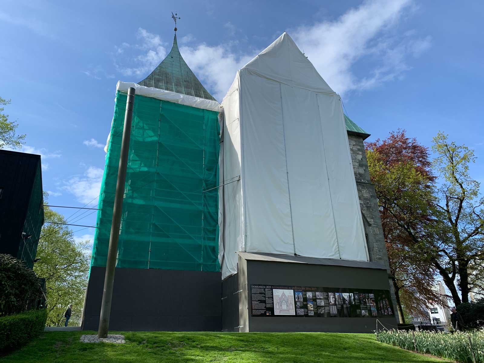 Domkirken i Stavanger pusses opp til 900-års jubileet i 2025. Bilde 4. mai 2019.