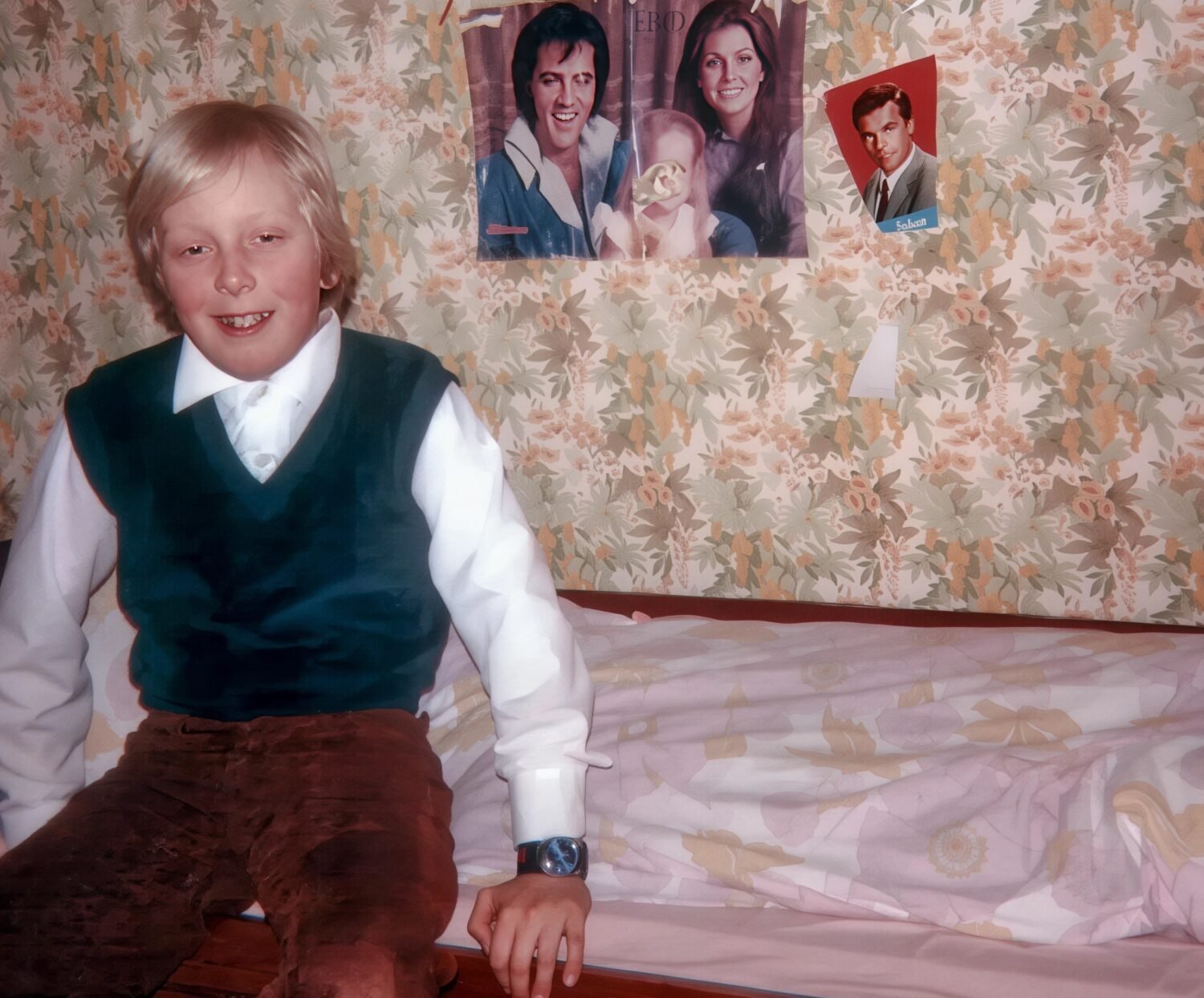Bilde av Elvis Presley og familien hang på veggen på barnerommet mitt. Bilde tatt rundt 1980.