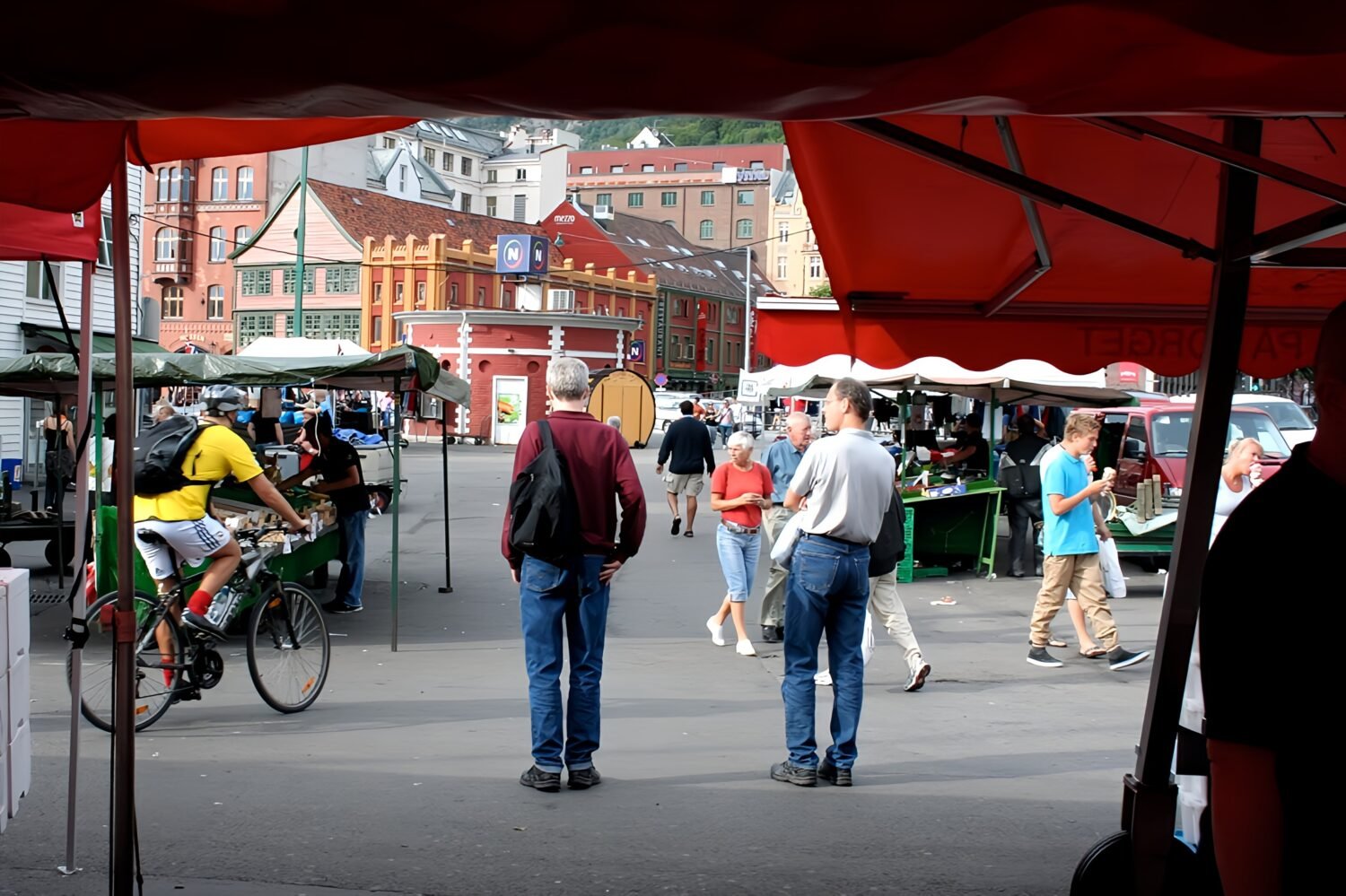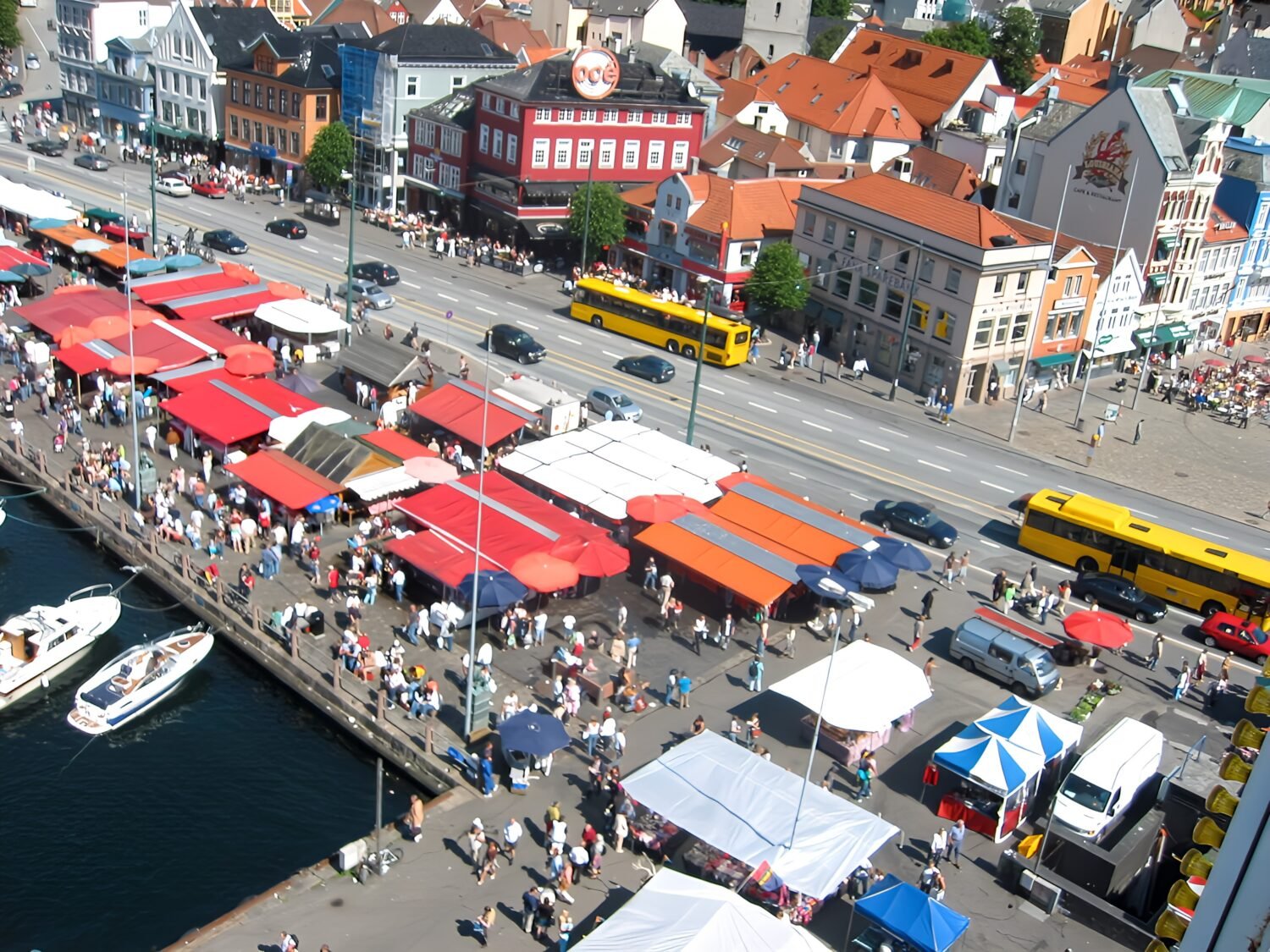 Fisketorget i Bergen er noe for seg selv. Torget er kanskje et av Norges mest kjente og berømte utendørsmarkeder. Det ligger midt i hjerte av byen helt innerst i vågen. Her kan du stort sett få alt hva havet har å tilby og så fersk som det kan forbli. På torget selges det også frukt, grønnsaker og blomstrer.