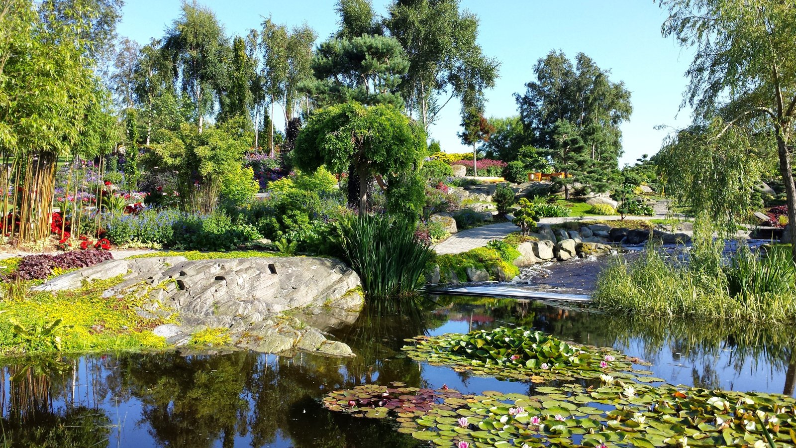 Nydelige omgivelser og flotte steinbed og belegningsstein som man går på. Foto: 23.07.2013 av Tormod Gundersen.