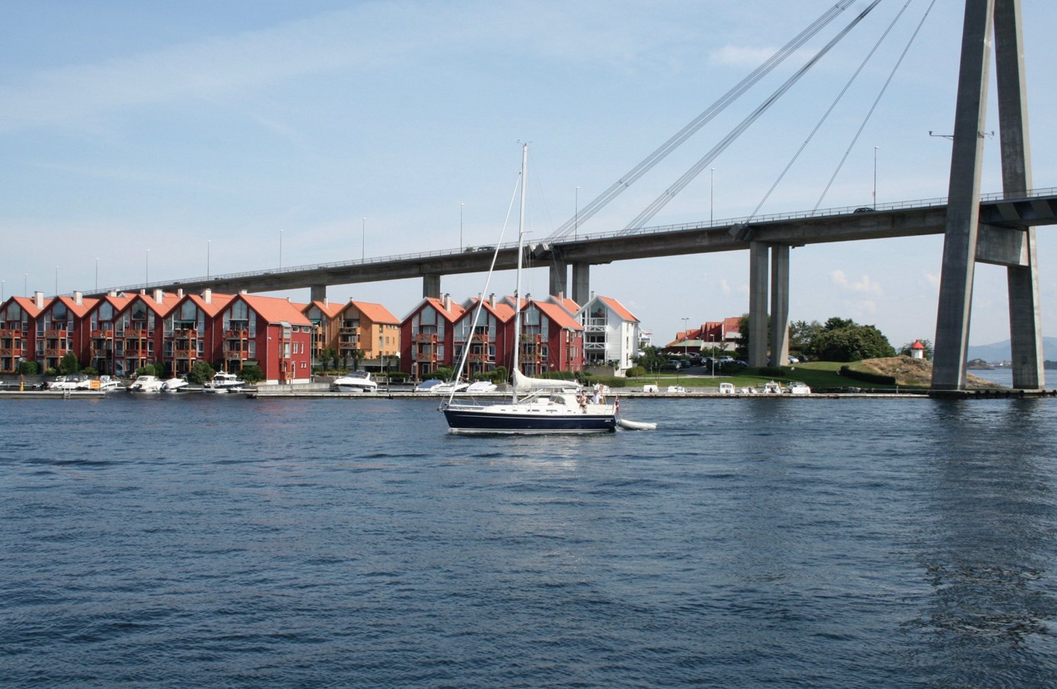 Grasholmen sett fra Stavanger hvor vi også ser Bybroen som sørger for fastlandsforbindelse.