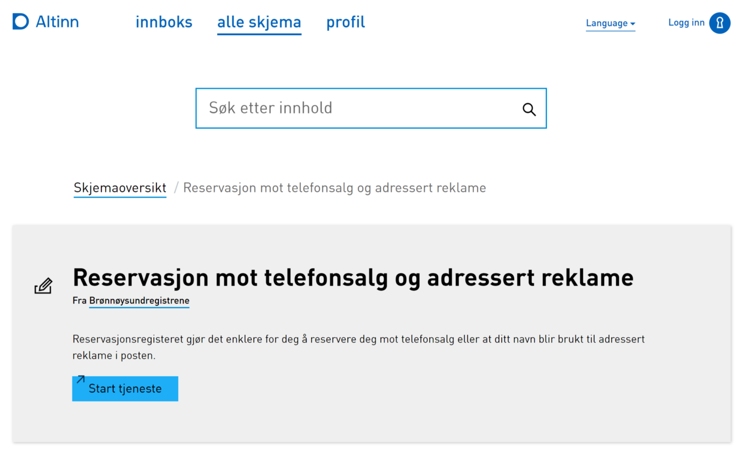 • Når du er logget inn, får du opp et skjema der du kan velge å reservere deg mot telefonsalg og/eller direkte adressert reklame.