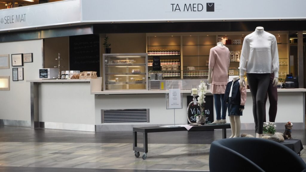 Jeg ble veldig fascinert av kjøpesenteret. Det er åpen og innbydende, og her finner du fort roen med en kopp kaffe eller en matbit på Sele Mat Jærhagen i 2. etg. Her kan du nyte et stort utvalg av påsmurt, kaker, jærbakst, salater mm. Dagens middag, dagens suppe og selvsagt lørdagsgrøt hører til!