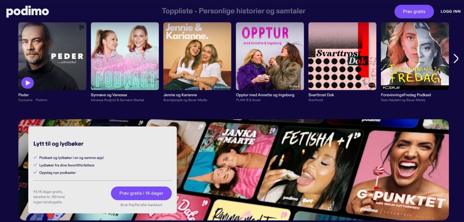 Jeg har prøvd Podimo og kan absolutt anbefale tjenesten!