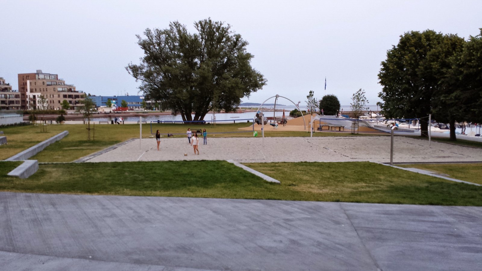 Foran hotellet er det gressområder hvor man kan sole seg, sandvolleyballbane og bystranden. Foto: 13.07.2013 Tormod Gundersen.