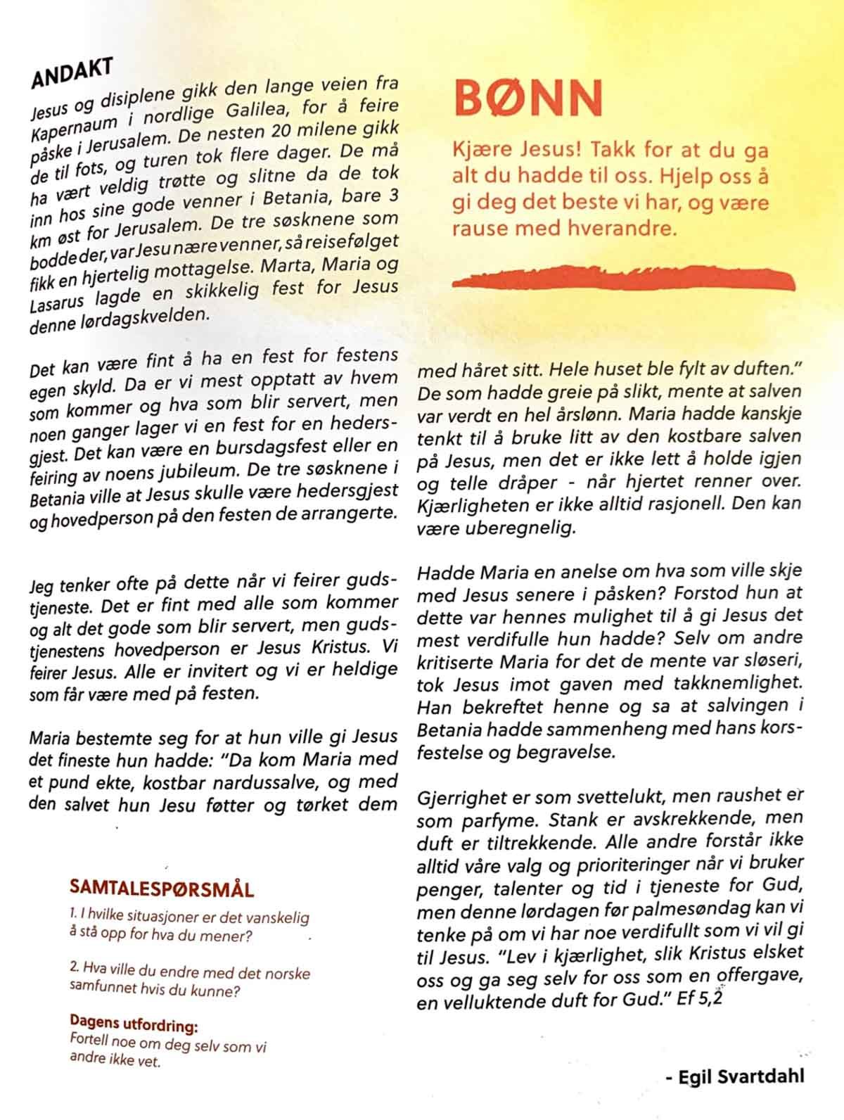 Blant annet har også Donald Lawrence og Solveig Leithaug laget sine egne favoritt-påske-spillelister til heftet! Hefte er krydret med dikt av Trygve Skaug, forslag til aktiviteter, oppskrifter, quiz, kryssord, Kahoot og mye, mye mer! Dette heftet kan absolutt anbefales.