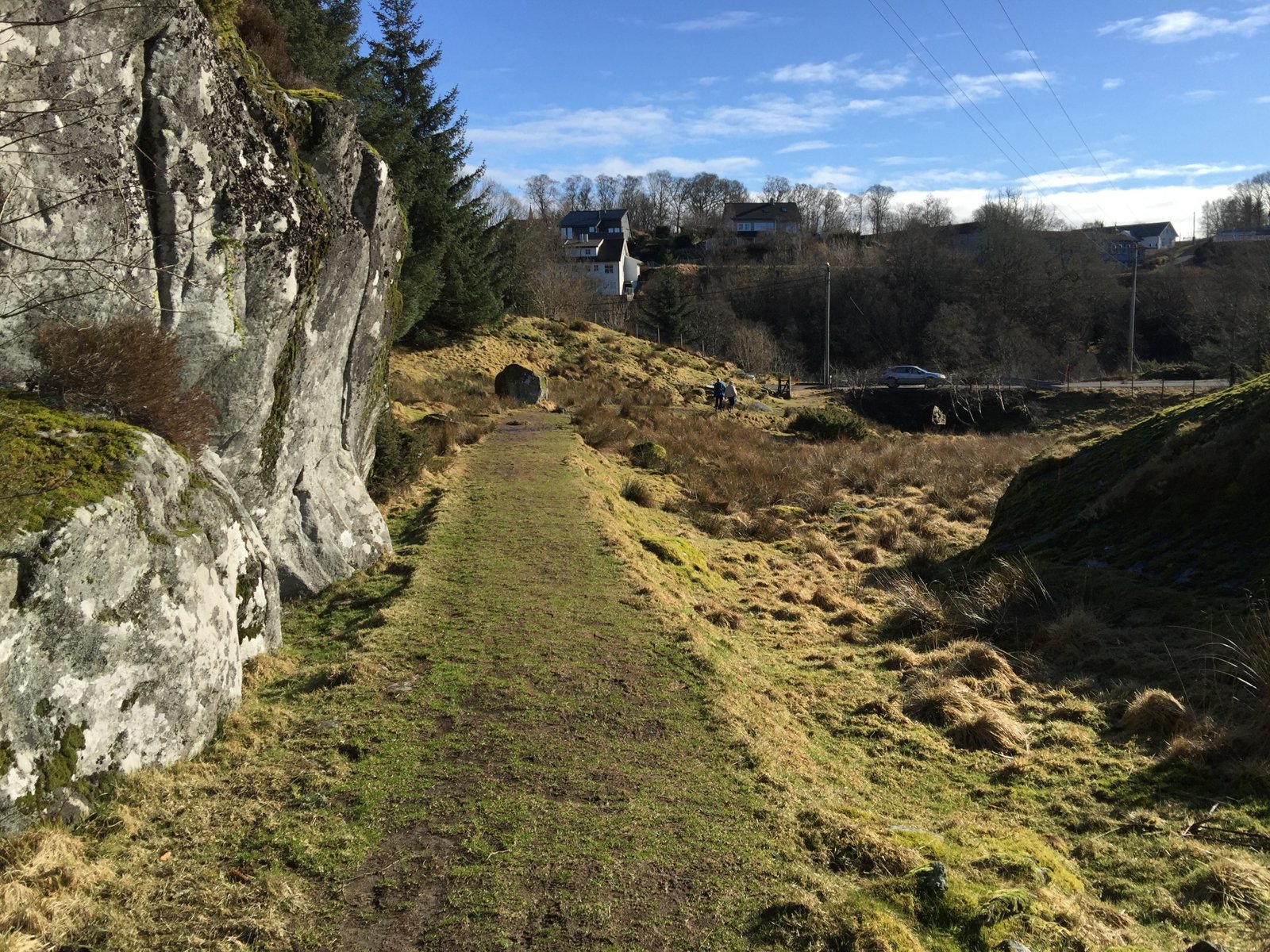 Turen går nordvest gjennom Mangermarka, som tidligere var hovedvei til Byrkjeland og gårdene lengre nord. Vi pleier å gå til veien ved Byrkjelandskaien før vi snur og går tilbake.