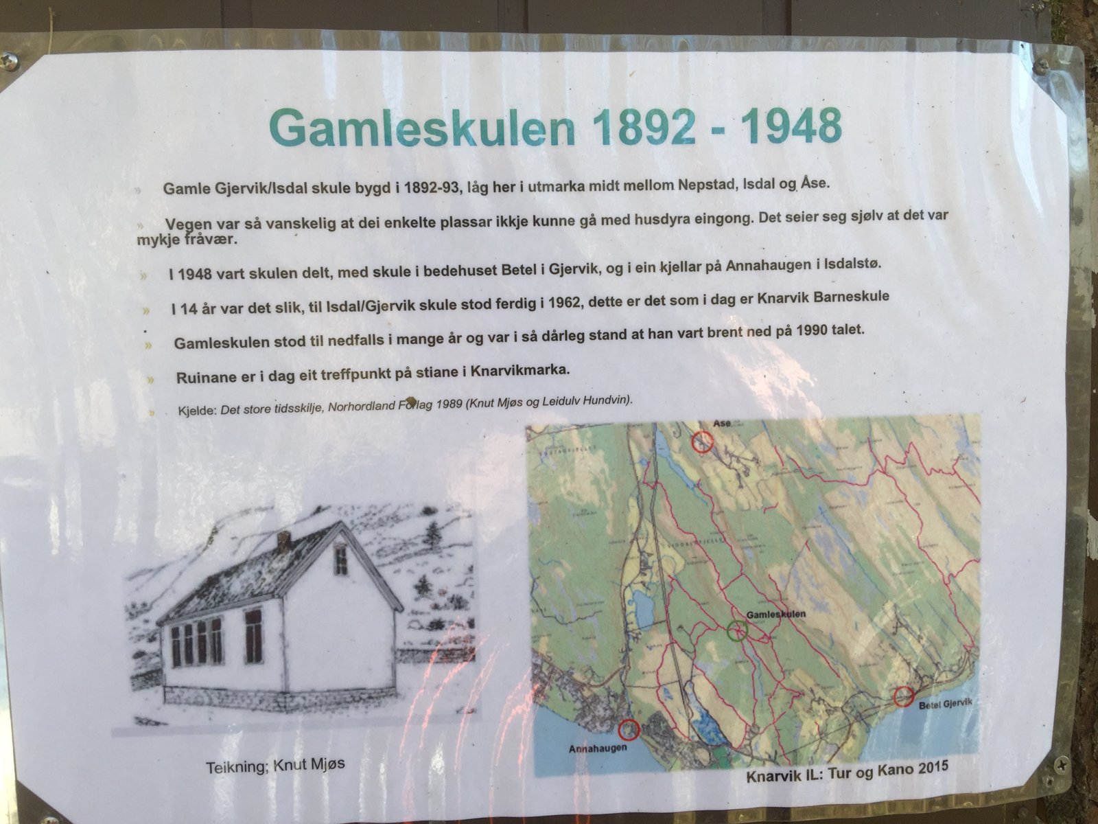 Nyttig informasjon skilt ved Gamleskulen. Foto: Tormod Gundersen.
