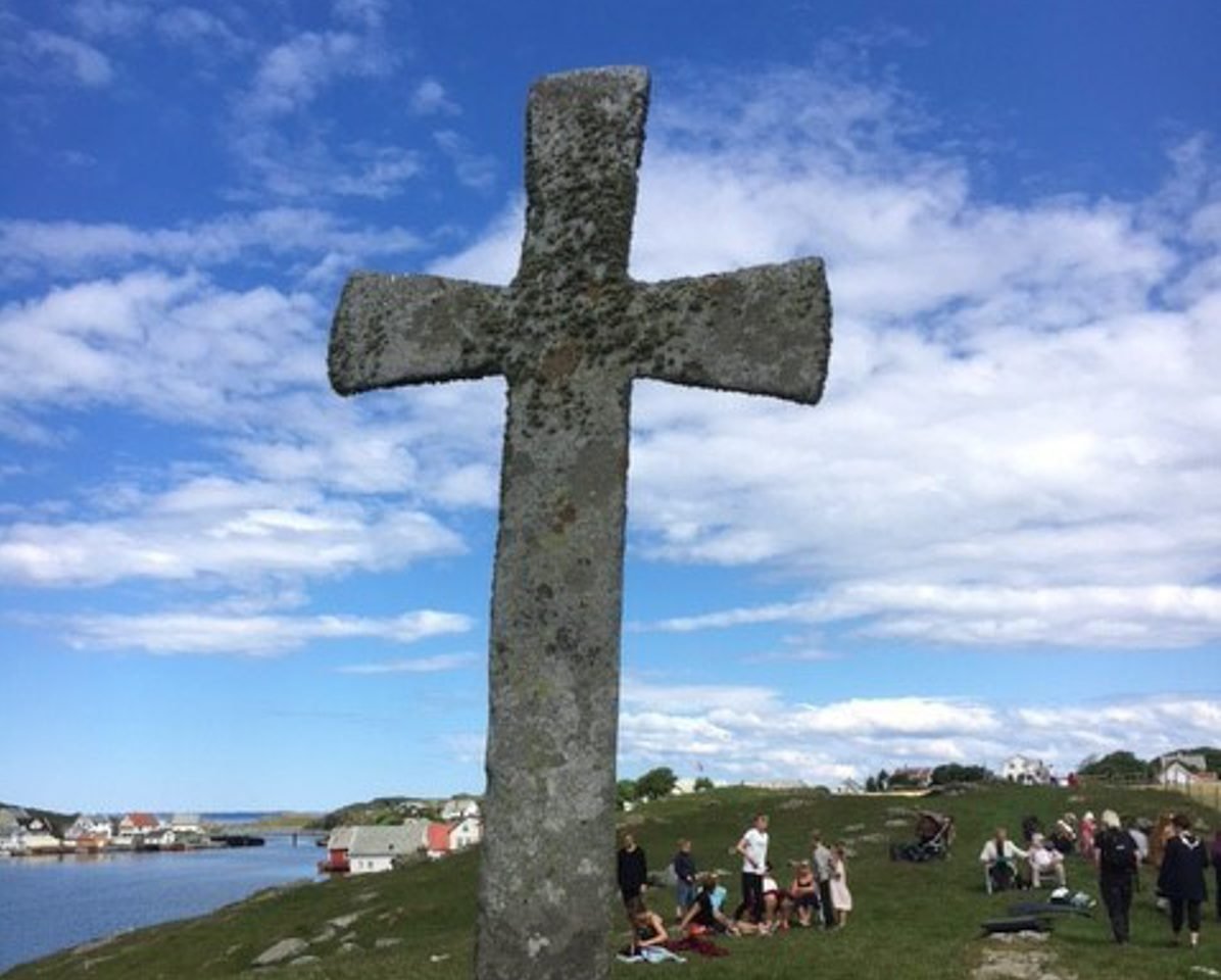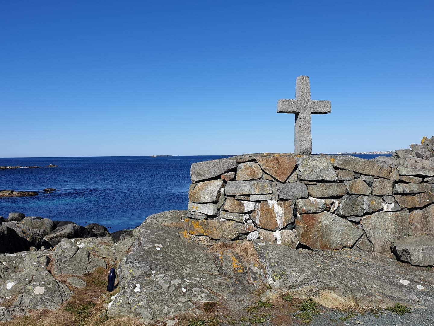 Et annet flott steinkors står på Fishermen’s Memorial på Ferkingstad på Vest-Karmøy. Steinkorset er satt opp til minne om karmøyfiskere som ble borte på havet.